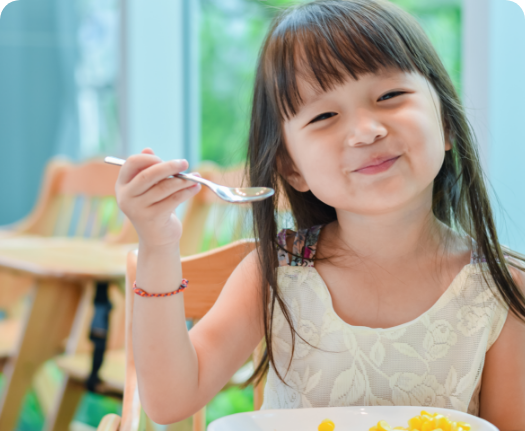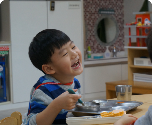 어린이집에서 하루의 대부분 시간을 보내는 영·유아들에게 올바른 위생관리와 성장 발달에 적합한 균형 잡힌 식단에 근거한 급식을 제공합니다.